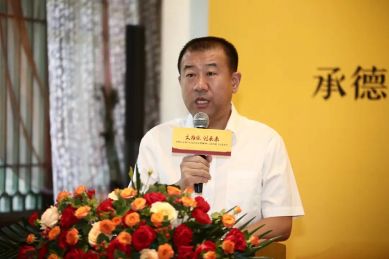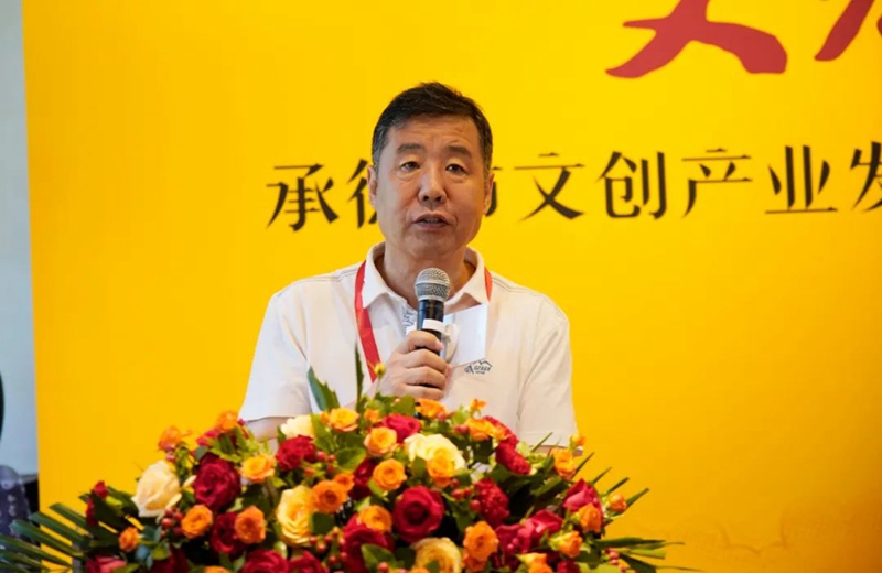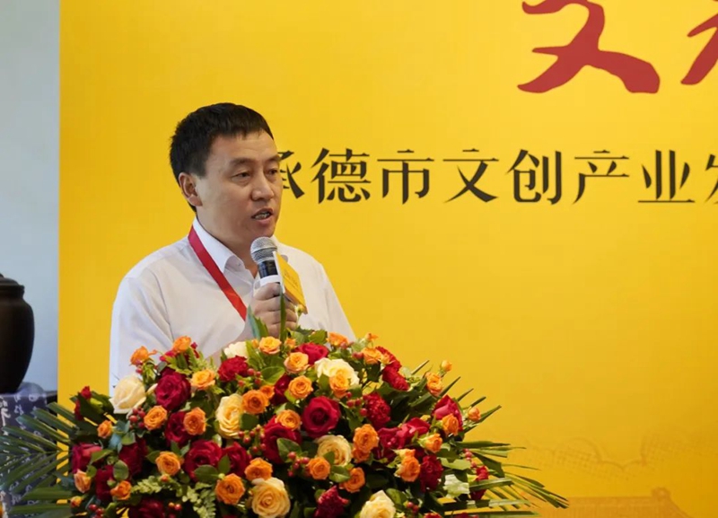 中共承德市委宣傳部副部長(zhǎng)房興利發(fā)表講話,深入探討了如何傳承弘揚(yáng)傳統(tǒng)文化,以及如何推動(dòng)新時(shí)代文化挖掘與傳播,承德高質(zhì)量發(fā)展的問(wèn)題。他強(qiáng)調(diào),文創(chuàng)產(chǎn)業(yè)是突出文化內(nèi)涵的一種重要表達(dá)形式,未來(lái)應(yīng)不斷凸顯文化支撐功能,凝聚合力、創(chuàng)新文化表達(dá)形式,發(fā)展文創(chuàng)產(chǎn)業(yè)、打造文化標(biāo)識(shí),以此促進(jìn)承德經(jīng)濟(jì)社會(huì)的全面發(fā)展。