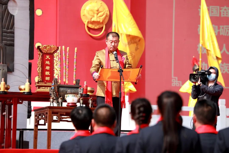 在莊嚴(yán)肅穆的鐘鼓聲中,板城酒業(yè)領(lǐng)導(dǎo)班子在祭祀官的指引下,通過恭請祖駕、誦讀祭文、獻(xiàn)酒五行、宣讀訓(xùn)詞等十多個(gè)步驟,莊嚴(yán)肅穆地完成了敬獻(xiàn)天地先祖的儀式。