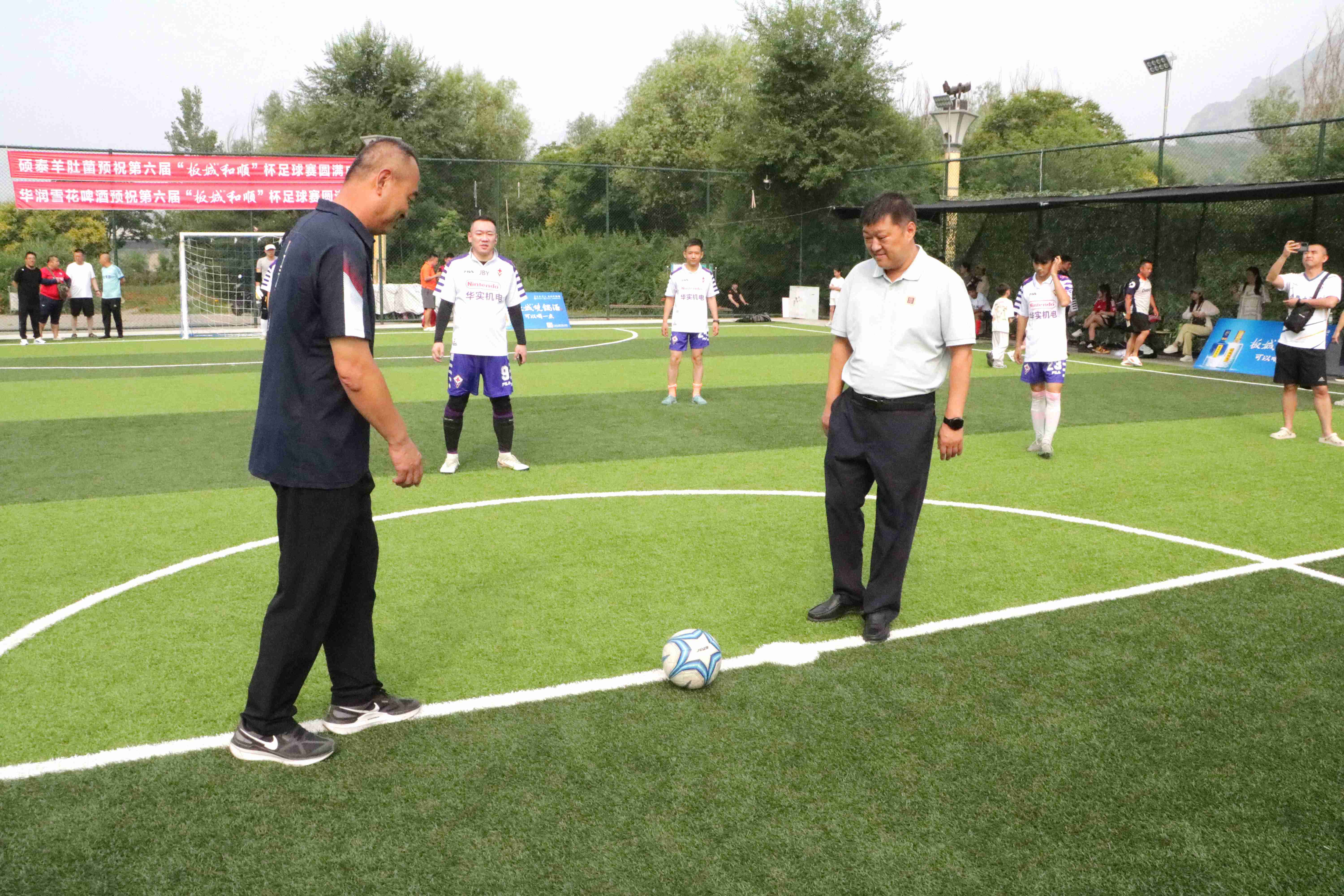 承德縣教育和體育局班子成員、體育工作指導(dǎo)中心主任朱瑞東和板城酒業(yè)承德南部戰(zhàn)區(qū)區(qū)域經(jīng)理胡聚偉為比賽開(kāi)球。