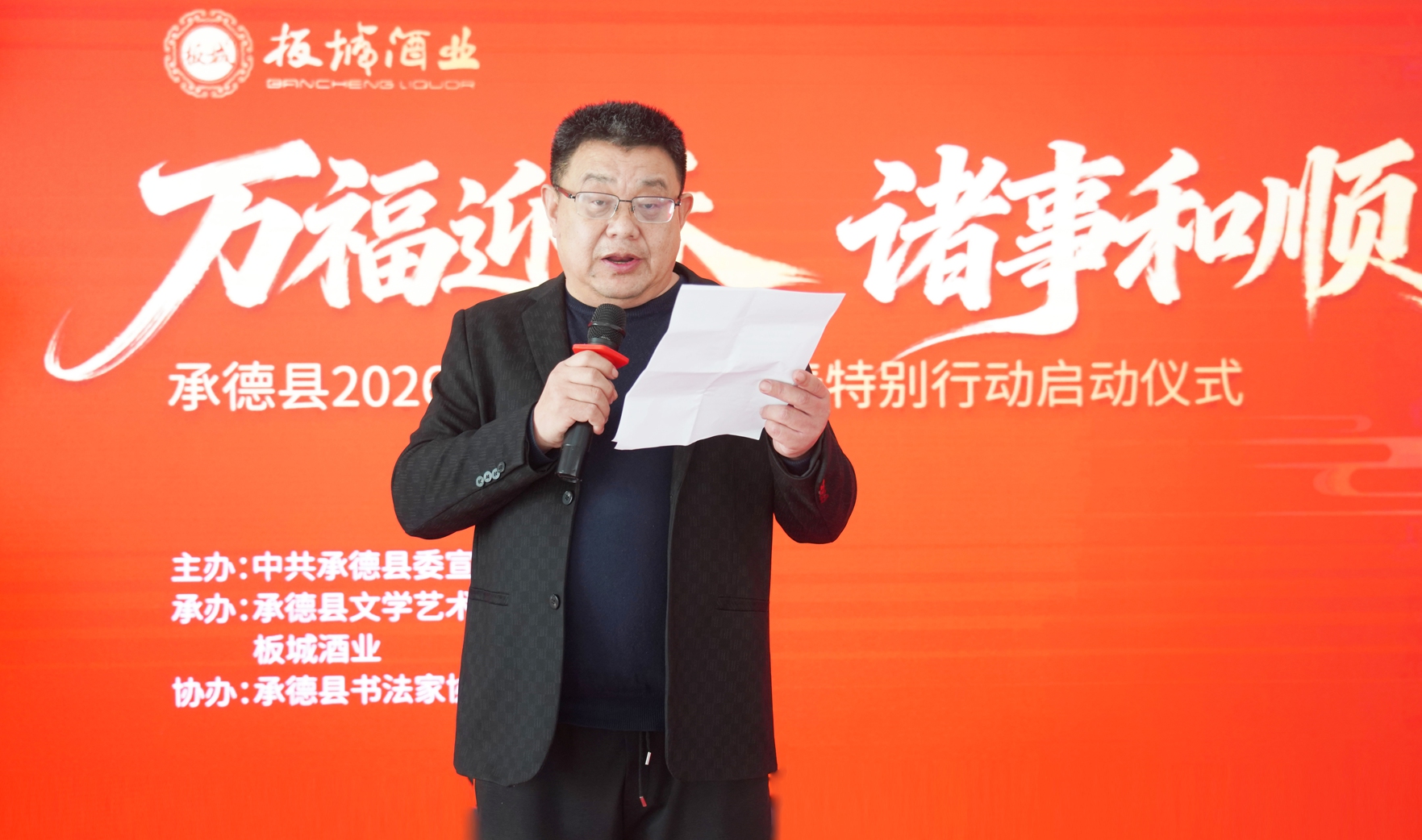 乙巳辭舊歲,丙午啟新程。1月16日,由中共承德縣委宣傳部主辦,承德縣文學(xué)藝術(shù)界聯(lián)合會(huì)、板城酒業(yè)承辦,承德縣書法家協(xié)會(huì)協(xié)辦的“萬(wàn)福迎春·諸事和順——承德縣2026年文化惠民新春特別行動(dòng)啟動(dòng)儀式”在板城酒業(yè)圓滿舉辦!